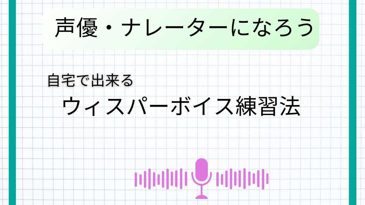 声優・ナレーターを目指す皆さんは、ウィスパーボイスをマスターするとスキルがグーンと向上するかもしれません。